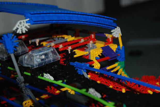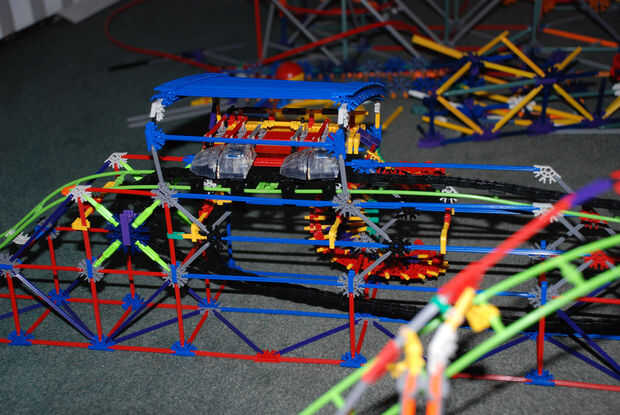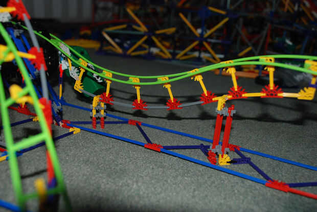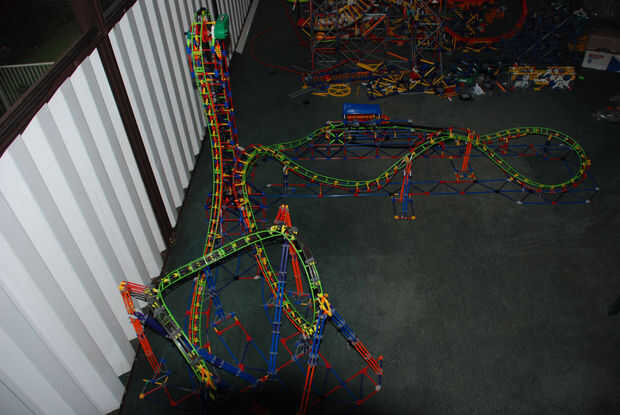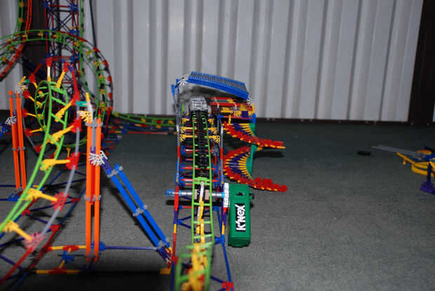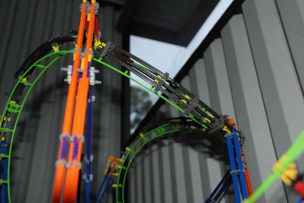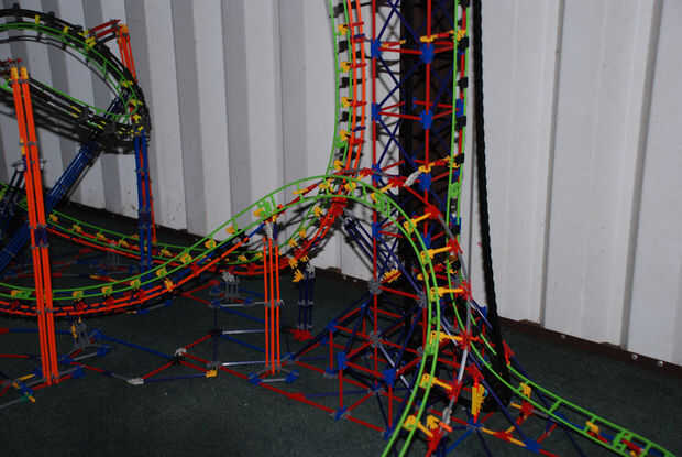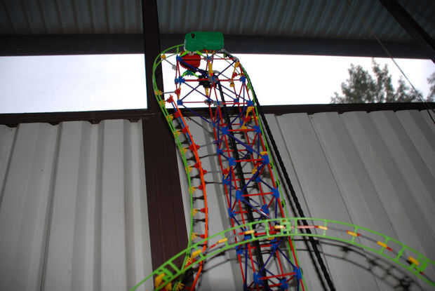 3,5 ft vertical montaña rusa creada a partir de K'Nex. El tiempo de construcción fue alrededor de 3 horas. Esta montaña rusa es un diseño totalmente original.