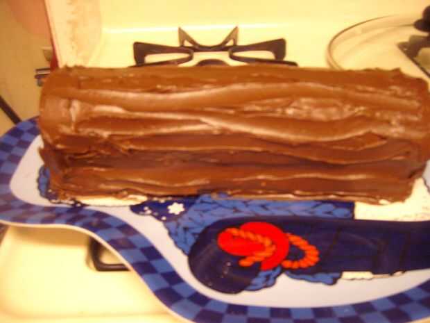04. cubre todo el rollo, incluyendo extremos, con glaseado de chocolate.