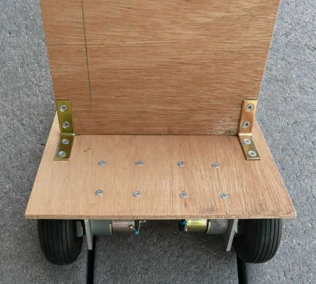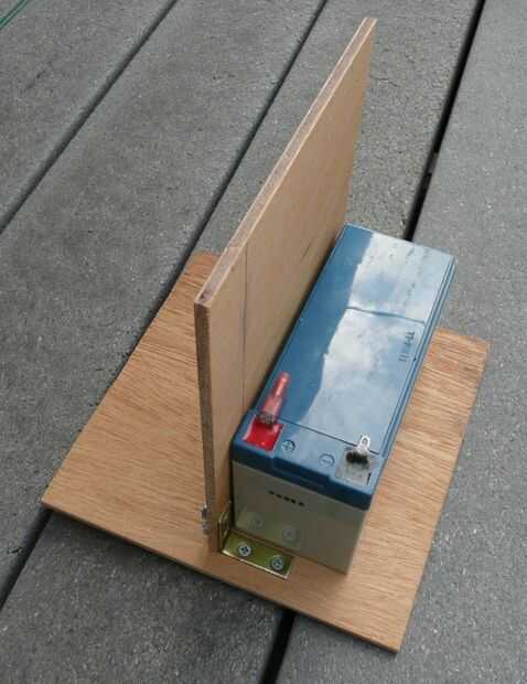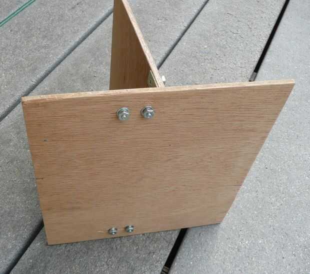 Se realiza la conexión entre la base y laterales con soportes de ángulo simple - se utilizaron tornillos de cabeza plana para montarlos con una arandela y arandela en la parte de madera. Si los coloca en los bordes de la parte 7", terminan muy bien a cada lado de la batería.