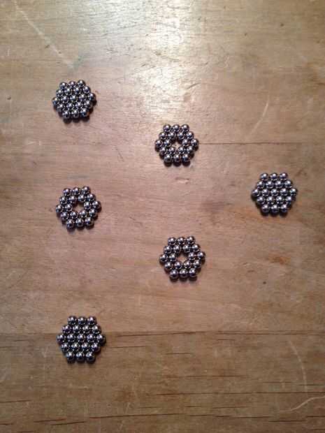 Arreglar tus hexágonos juntos así como con los hexágonos de medio abierto en el centro y los hexágonos de medio cerrado en los bordes.