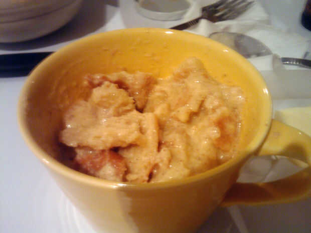 Vierta la mezcla sobre el pan. Si es necesario, utilice un tenedor a lo largo abajo en las grietas por lo que hace su manera a través del pan.