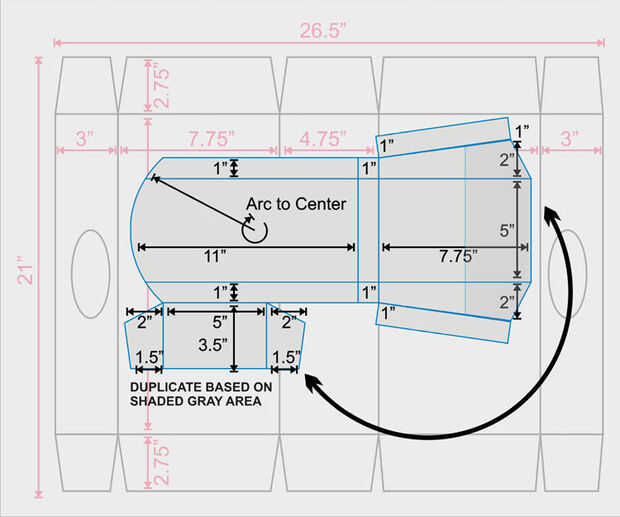 La zona gris más oscuro es un duplicado y colocado en un área abierta de la cartulina. Se utilizará para ocultar la impresión visible y para el refuerzo.