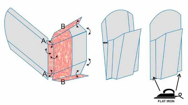 Pegamento caliente los delanteros 1" laterales"B". ¡ Em deje que seque. Posición y aplicar la plancha. Puede manipular la posición antes el adhesivo se seque.