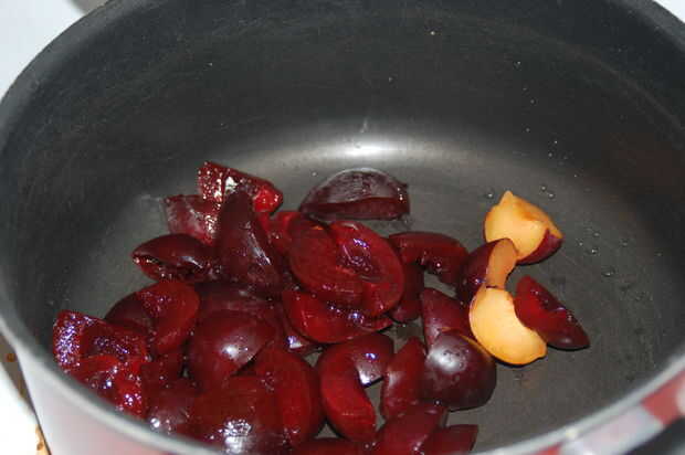 De lavado y cuarto de las ciruelas, retirar su hoyo y partes podridas. Arrójelos en un cazo.