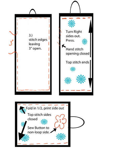 9. dobla el rectángulo mitad ancho por lo que ahora tienes un rectángulo de 5 "x 4" con sus lados impresión tejidos hacia fuera, el forro interior. Coser el bolsillo cookie cerrado por tapa-que cose cerca del borde de la tela a lo largo de los lados largos de 5"