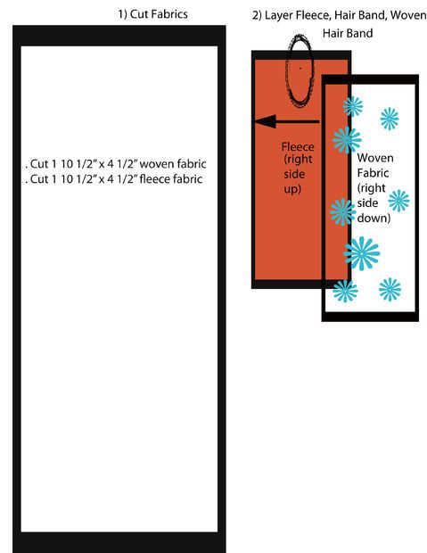 4. Coloque la banda de pelo en el centro de uno de los 4 1/2" extremos de la tela del paño grueso y suave