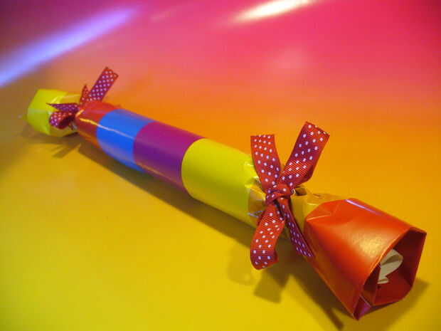 7. cortar tiras de la cinta para añadir lazos decorativos en los extremos del tubo