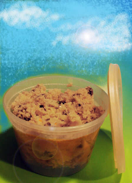 Simplemente limpiar y secar el envase y llenarlo con una porción de masa para galletas.  Añadir etiquetas personalizadas decorativas y las instrucciones para hornear y eres regalo está listo para ir!