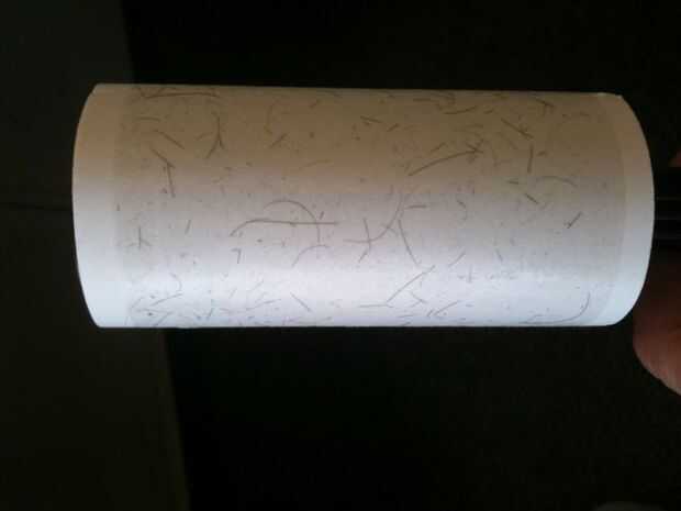 Pero, con eso elección viene una molestia grande--todos los recortes puestos en todo como sus oídos y lo peores de todo, el cuello de la camisa! La picazón ya conducirá loco! Hoy estaba muy mal, así que decidí romper el rodillo de pelusa que guardo en mi escritorio, una de las alegrías de ser dueño de un gato blanco kat--y probarlo en mi cuello de la camisa.