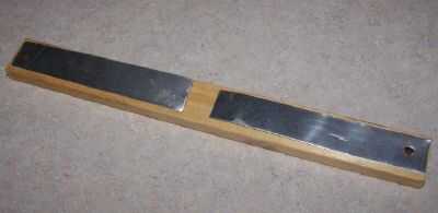 Perforó un pequeño orificio en cada pieza de aluminio y utiliza alfombras bordadas para montar el extremo exterior de cada uno a un pedazo de enrasar comúnmente conocida como 1 x 2. La distancia entre las dos piezas en el centro es de 7/8 de pulgada (2,2 cm). Eso significa que usted necesita cerca de 15 pulgadas (38 cm) de enrasar.