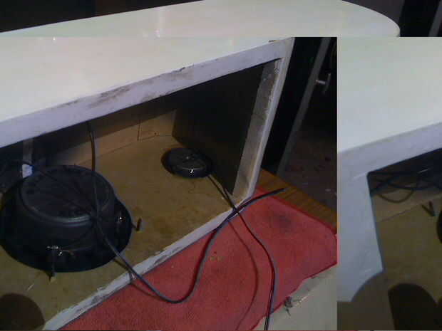 Jodido el altavoz de 13cm en la caja con algunos tornillos negros y el pegado los tweeters con resina epoxi (Araldite)