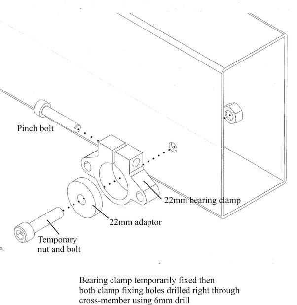 Ajuste de 22mm con abrazaderas en la posición correcta con varilla de 6mm roscada derecha a través de cada uno de lo delantero y trasero Cruz-miembro principal utilizando a espaciadores de tubo de metal dentro de cada miembro de la Cruz para evitar que la acción de la CNC de la máquina distorsionando las paredes de los largueros.