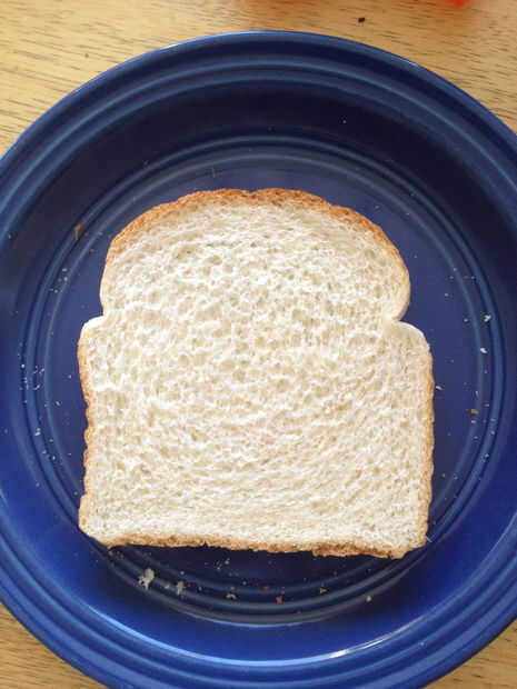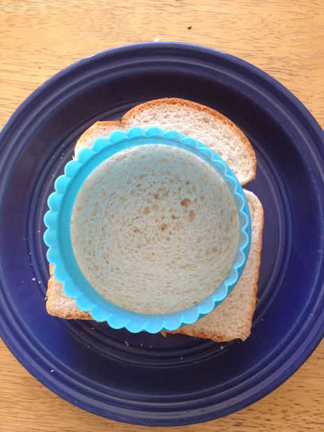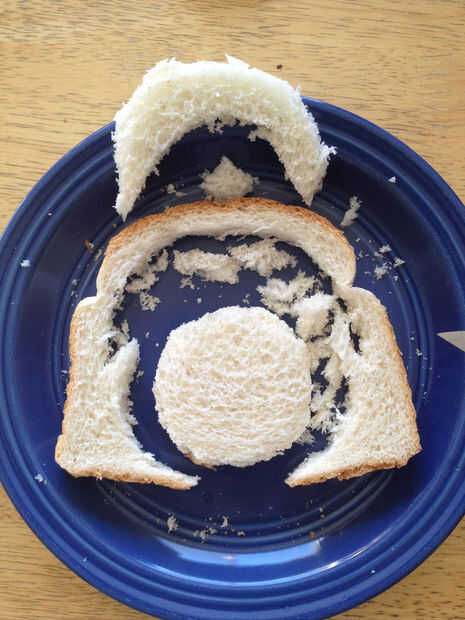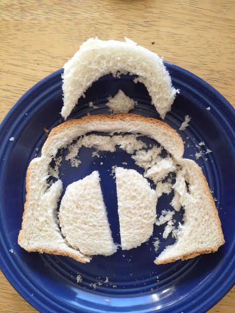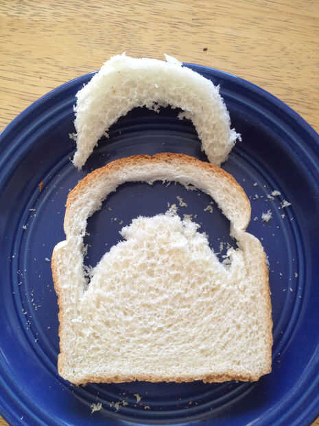 Con la otra rebanada de pan, hacer cortes como se muestra en la imagen, transformándolos en bollo del pelo de la princesa