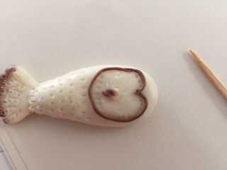 estirar un tubo muy fino de brown y arcilla polimérica blanca se aplica a la forma de la manzana marcada