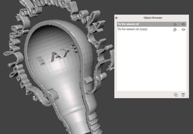 Ahora tienes tus dos partes de la ornamentación. Verás que hay un hueco en el centro de la bombilla. Al imprimir el adorno, asegúrese de hueco de cualquier material de apoyo en esta área. Si tienes una cadena de luces, esto le permitirá alimentar una luz dentro del espacio hueco, con el resto de las luces fuera de ella. De cinta o pegamento el ornamento alrededor de la luz.