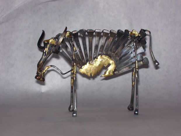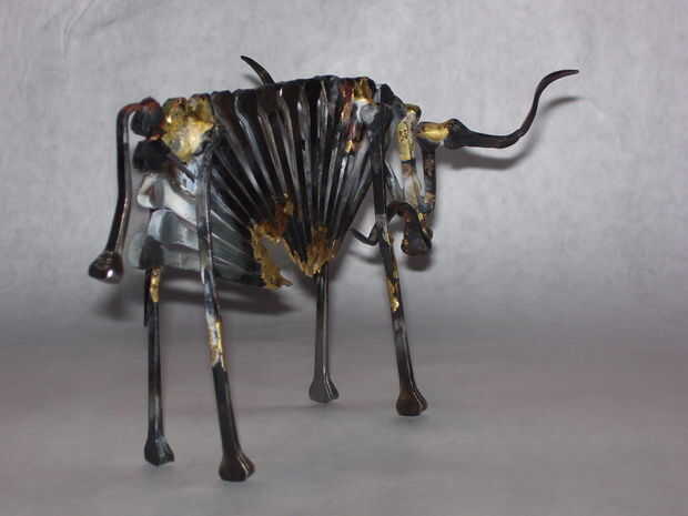 Un estudiante del compañero en mi clase de soldadura trajo en un novillo de clavo de herradura, que su madre lo había conseguido y se iba a tratar de recrearlo. Bien no tuve ningún proyecto en el tiempo, así que decidí probar mi mano en ella. Muchacho es duro, muchos desperdicié un clavo tratando los cuernos apenas a la derecha.