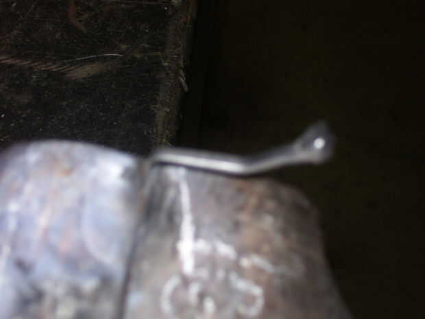 Entonces unos 3/4" hacia abajo hacia la punta de la curva, quiere doblar el clavo sobre 90degrees, con otra curva ligera aproximadamente 1/4" de la punta.