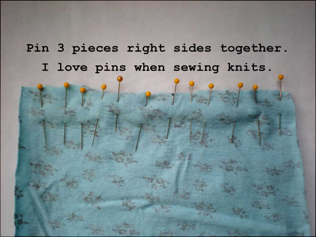 La cantidad de pines que se utiliza depende de su tipo de aguja. Si tienes una aguja para jersey (o telas de estiramiento por lo menos) no necesita cerca de este muchos. Pero, si como yo en el momento que no tienes dichas agujas, alfileres le ayudará a mantener a la tela de arrugas.