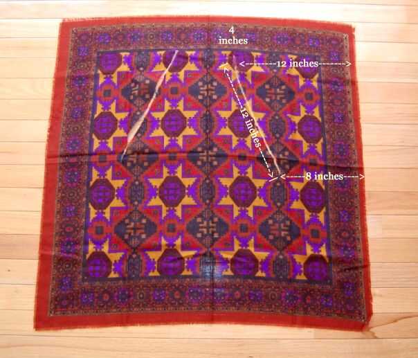 Yo comentar esto y no medir nada antes de la mano, pero entiendo que no es estilo de todo el mundo. Así que si eres todavía vacilante, revisa el siguiente diagrama. Incluye medidas para mi chaleco particular, pero ten en cuenta que se hizo en un pañuelo de 30 x 30. Siempre puede ajustar por consiguiente dependiendo del tamaño de tu bufanda.