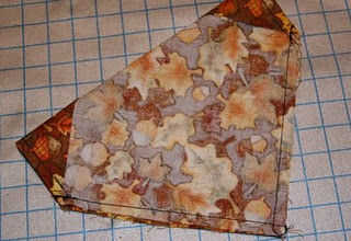 a continuación, doblar el pañuelo en la mitad, derecho contra derecho, alineando las dos esquinas (descosidas). Coser a lo largo de los bordes crudos.