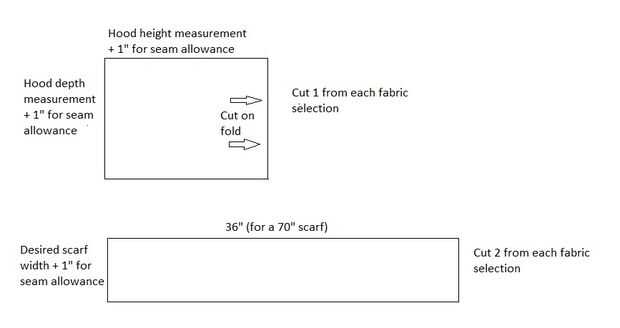 - Añadir 1" al ancho deseado de la bufanda (para 1/2 margen de costura)