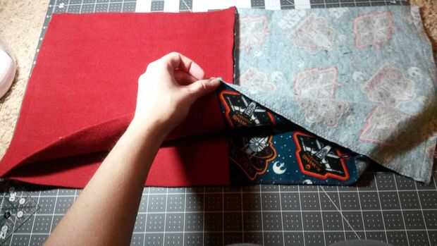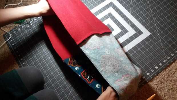 3. Empuje el revestimiento en el espacio entre la tela exterior, poner las costuras espaldas juntos.