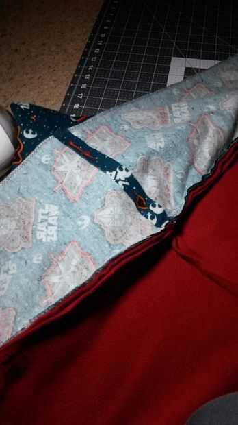 5. Abra el pañuelo y traer los lados equivocados de la capa externa de la bufanda y forro.