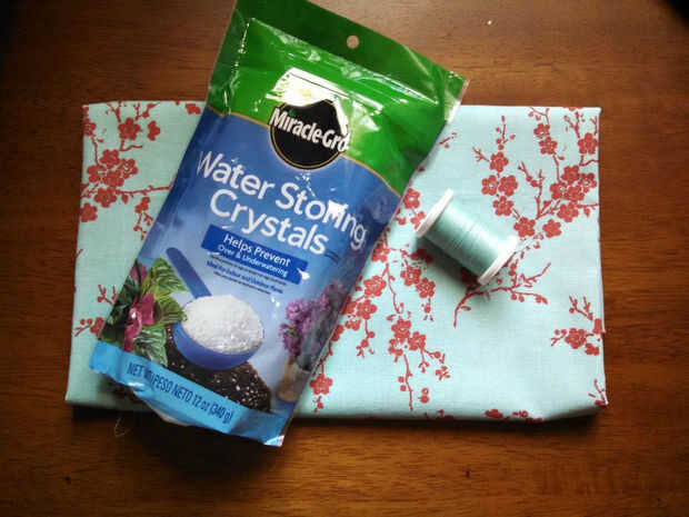 - Cristales de agua o gotas de agua para plantas en maceta. Busque en la sección de jardín de la ferretería. Cada bufanda utilizará menos de 1 cucharadita de granos, por lo que un bolso hará un montón de bufandas!