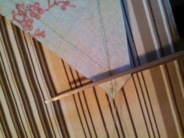 - Para hacer fantasiosos extremos puntiagudos, dibujar una línea de 45 grados desde una esquina hacia el interior borde. Si las líneas tanto inclinado hacia adentro. Se trata de una línea de costura, así que asegúrese de cortar la tela sobrante de 1/2" exterior esta línea.