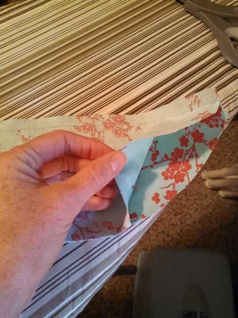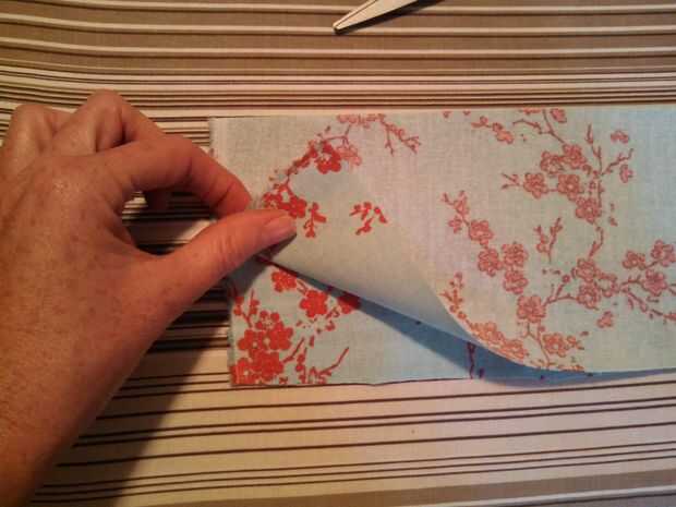 - Coloque el tela lado derecho (el lado con el patrón más brillante), luego doblar por la mitad lateral. Ahora está mostrando el lado equivocado de la tela. Presione la tapa.