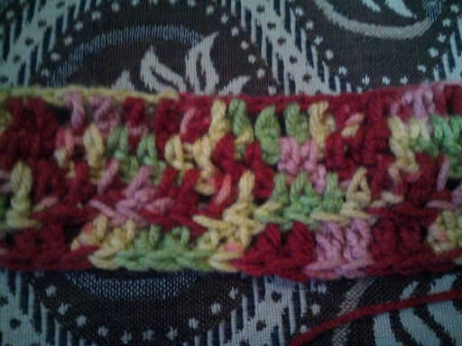 compré este hilo en un capricho.  Estaba buscando un divertido elástico hilo para hacer una diadema de y vi este hilo llamando mi nombre.  (Sabes lo que estoy hablando acerca de lo que has tenido hilado sólo llamar su nombre a!)Esta linda bufanda est