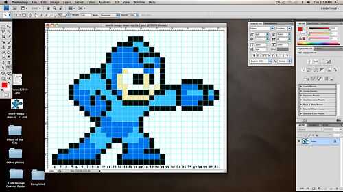 presento MEGA MAN!Ahora esto no es la caricatura de Mega man, este es el juego de video de 8 bits Mega man. Quería dejar eso claro. Es solo corto, robusto, de divertidos buscando chico en el video juego. De cuadros, parece su arma cambia a lo que
