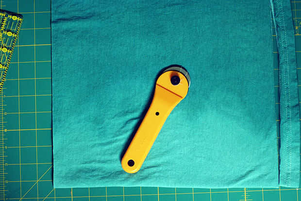 Ahora todo lo que se dejó para hacer fue cortar el dobladillo de la camisa y luego la parte superior. Hacer el corte bastante ancho y estirar el tubo largo de tela hacia fuera hasta que no haya ningún mañana.