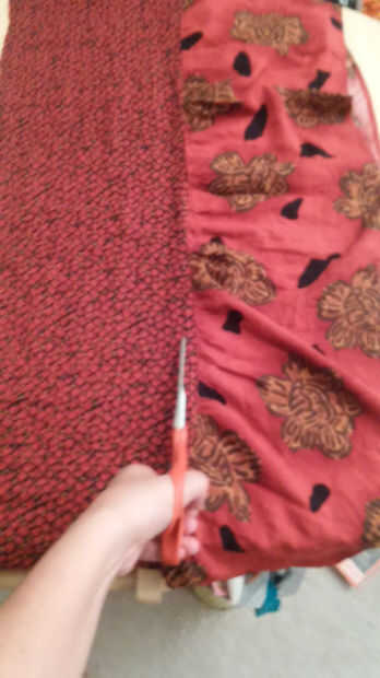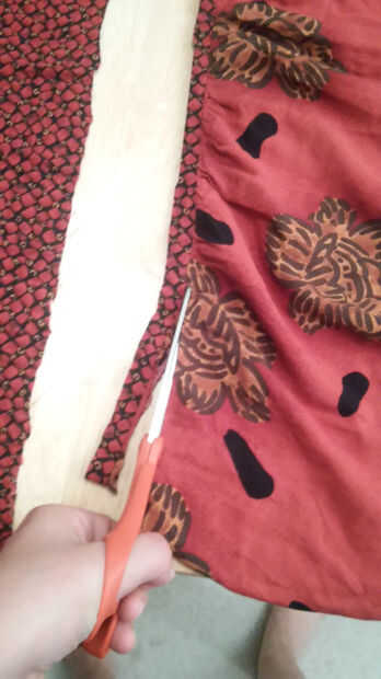 Comencé cortando la tela que quería del resto de los desechos de la falda.