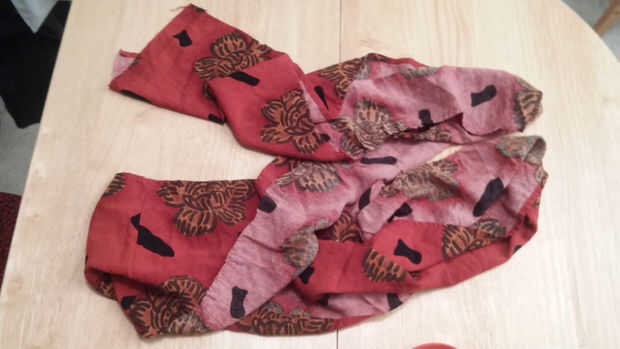 Cuando todo estaba todo dicho y hecho pude salvar un trozo de tela que era cerca de 10" de ancho y 6' de largo.
