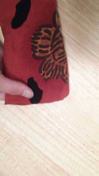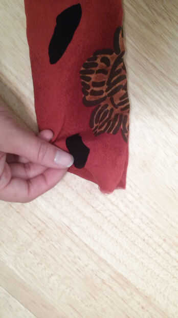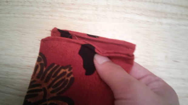 Empecé doblando el lado crudo de cada extremo largo y coser los extremos para dar un más limpio acabado al final de la bufanda