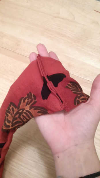 Después se cose cada extremo cierre cosí los dos extremos juntos crear la bufanda circular infinito.