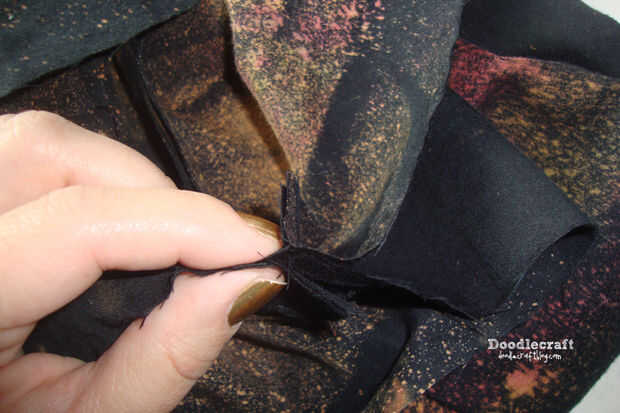 Puede entregar cosa it... o doblez en los bordes y ejecutar una puntada corta a través del agujero... como yo lo hice.