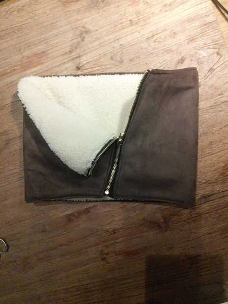 • Cortar a la longitud y al revés coser la cremallera a lo largo de la diagonal