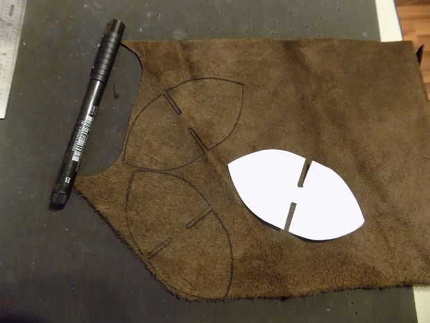 Dibujar una plantilla para sus piezas de cuero sobre el papel. Dobla el papel por la mitad para asegurar la simetría.
