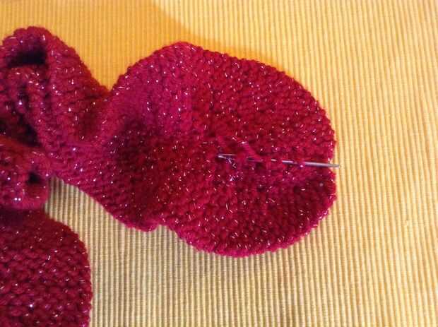 Entonces, no tienes que, pero me gustaría coser los dos puntos en cada extremo en un solo punto, usando la cola existente de hilo y una aguja de arte.
