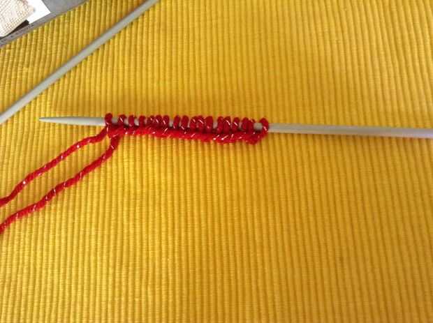 Fundición en 18 puntos de sutura con agujas de tamaño 7. (Patrones más en internet para esta bufanda has fundido en 20 puntos de sutura, que funciona muy bien. Prefiero mi pañuelo para estar un poco más estrecho y un poco más, trabajo con 18. Hasta a usted.)