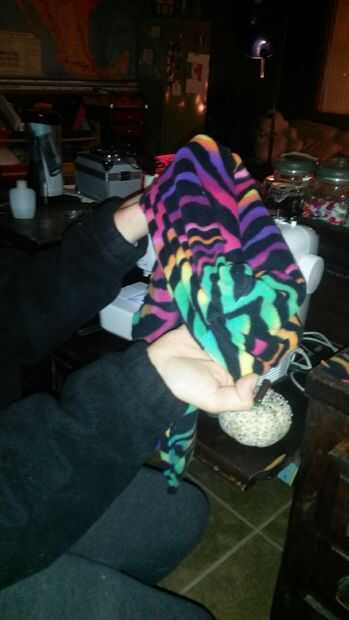 3. acabé haciendo 3 calentadores de cuello con la izquierda sobre telas.