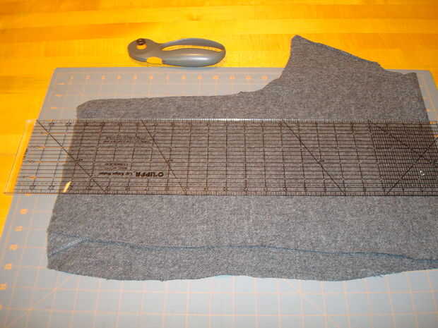 Éstos eran 16 pantalones tamaño - corté dos 7 "x 32" y uno de 7 "x 28" tiras de tela (hubo hoyos - tal vez polilla? - que obviamente limita la cantidad de tela disponible).