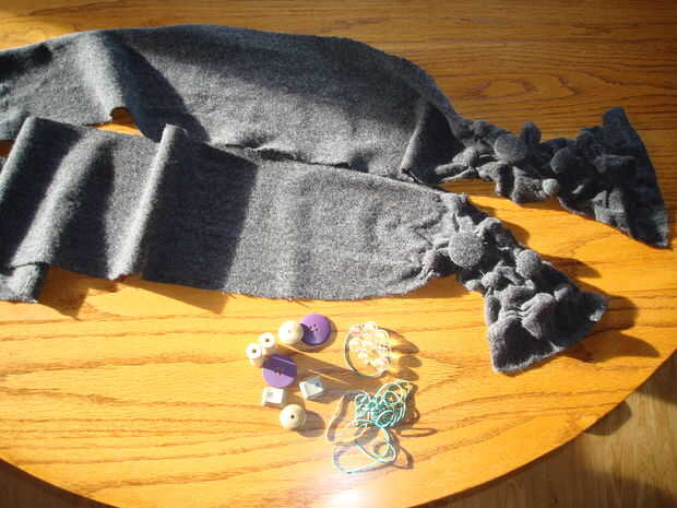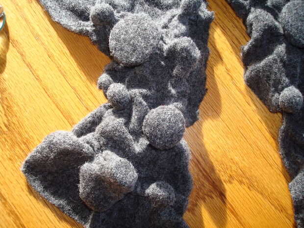 Mejoras opcionales: cortar un borde ondulado alrededor de la longitud de la bufanda o cortar círculos en bufanda (no ravel como es lana!).