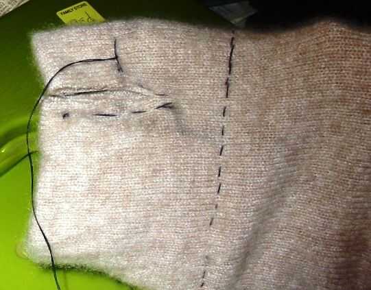 Ahora corte a lo largo de la línea de hecho y lo podría dobladillo si quiero, pero no es realmente necesario porque ha sido de fieltro y no desentrañar.  Coser a lo largo de la muñeca para mantenerla doblada y no confundir los dedos con huecos o agujeros en el guante al poner su mano.  Uso de la información en he podido hacer un pulgar con una puntada de hilvanado y cortar donde sea necesario.  Luego he hojeado lo revés de la costura a coser correctamente.  Llamé a mi DD otra vez para ayudar a encontrar su pulgar.  Tuve que hacerlo un par de veces porque a veces tengo muy confundido con mi derechas e izquierdas.  JAJAJA!  La última foto es del pulgar completamente cosido y listo para hacer la parte del guante.  Quería hacer una curva para el guante, pero absolutamente no siente suficiente confianza para no lo botch.  Por lo que cosido recto.  Como dije antes una costurera más experimentada será capaz de hacer un trabajo mucho mejor.