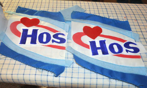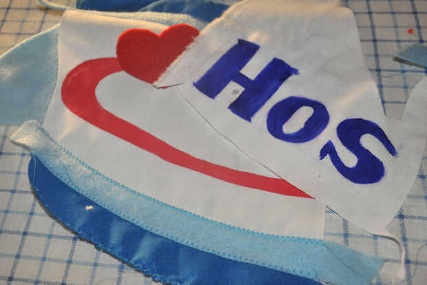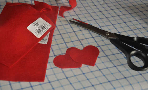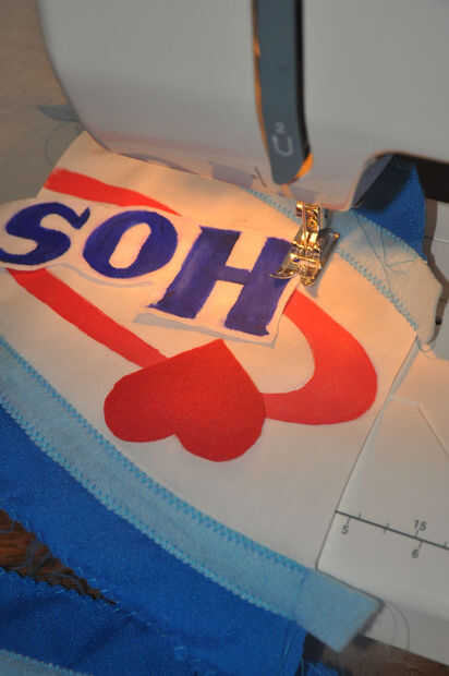 • zig zag terminar "Hos" y fieltro corazones con hilo blanco (imagen #6-7)