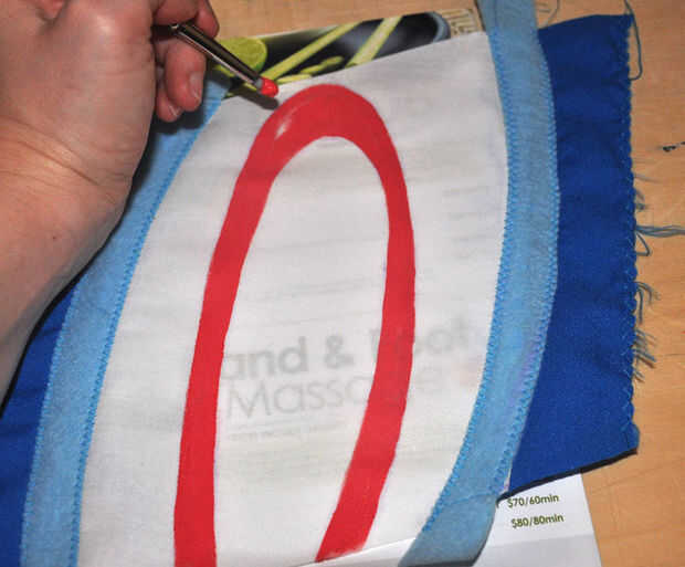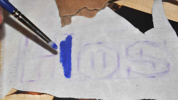 3. cortar la tela sobrante alrededor de caracteres deje al menos 2 mm bordes del texto pintado