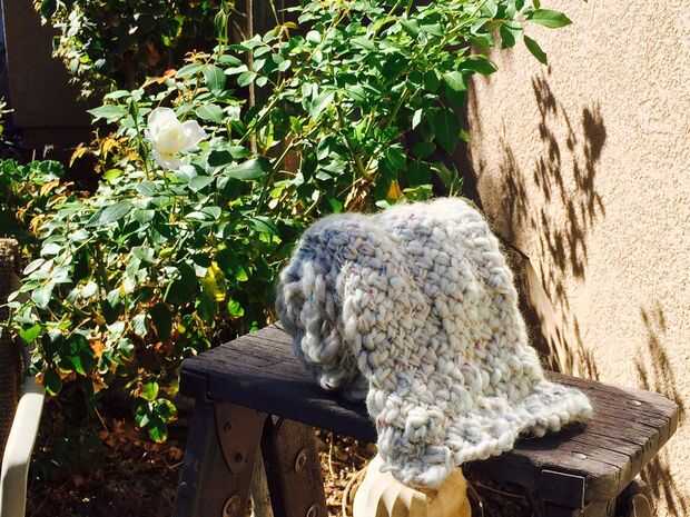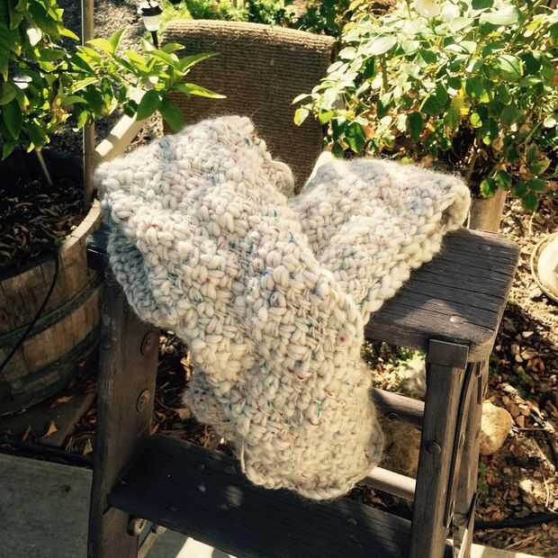 Para los que preguntan, el hilo que utilicé es bucles y "Horizonte Tweed grueso y fino-voluminosos itinerante" de hilos en crema. El hilado es 90% lana, acrílico de 7% y 3% viscosa, y utilicé tres yd 60 madejas de este hilado textured para mi bufanda. Se puede ver en las fotos que este hilo tenía una gran variedad de tonos y refleja diferentemente en diversa luz, que es una gran opción para proyectos que necesitan un color neutro, variable!