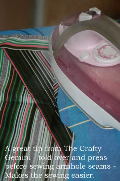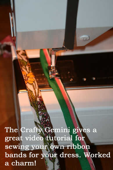 El astuto Géminis también tenía otro video donde ella hizo sus propias correas para su vestido de funda de almohada (en lugar de utilizar la cinta tradicional). Bien, no pudiendo dejar perder mi corte trozos de los pañuelos, utilizar su video para hacer mi propia cinta de coordinación para el vestido. Yeehaw! Trabajó como un encanto con el exactamente el efecto tenía la esperanza de for...long que fluye lazos en el vestido.